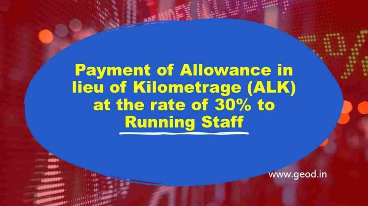 Sub: Payment of Allowance in lieu of Kilometreage (ALK) at the rate of 30% to Running Staff who were not assigned running duties due to cancellation of passenger carrying trains on account of COVID-19.